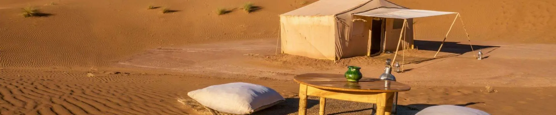 We will continue our camel trekking adventure until we reach a luxury camp. When you arrive, we will show you to your private tent, where you can relax and freshen up. As night falls, our camp staff will serve a delicious dinner featuring local cuisine. Gather around a cozy bonfire under the stars, where our camp staff will keep you entertained with lively drumming and enchanting Berber music. You will even be able to learn how to play the drums yourself, adding an extra layer of excitement to the evening’s festivities.